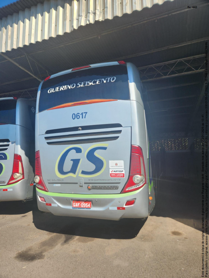 Ônibus da marca Scania, modelo Marcopolo Paradiso R, diesel, cor prata, para 43 passageiros, ano de fabricação/modelo 2017, placa GAF-0954 Tupã/SP, chassi 9BSK4X200H3901702, Renavam 01122787690. Ônus: Consta a restrição de transferência do veículo pelo processo n° 0000155-82.2023.8.26.0491 da 1ª Vara Cível de Rancharia. Local do bem: Rua Aimorés nº 170, Bairro Jardim Ipiranga, CEP 17607-313, Tupã/SP. Foram encontrados no site do DETRAN SP dívidas no valor de R$ 7.069,78 (julho/2025).