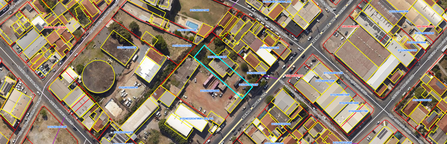 IMÓVEL I - Um lote de terreno medindo 49,00m de frente para a Avenida Miguel Sutil, antiga Perimetral, 49,00 de fundos, confinando com herdeiros de Fulgencio, tendo 60,00 metros de ambos os lados sendo o direito limitando com herdeiros de Fulgencio e lado esquerdo com Jonas B. Coleta. Area total de 640,00 metros quadrados, matriculado sob o número 52.967 — inscrita no 5º Serviço notaria e registral de Cuiabá/MT.